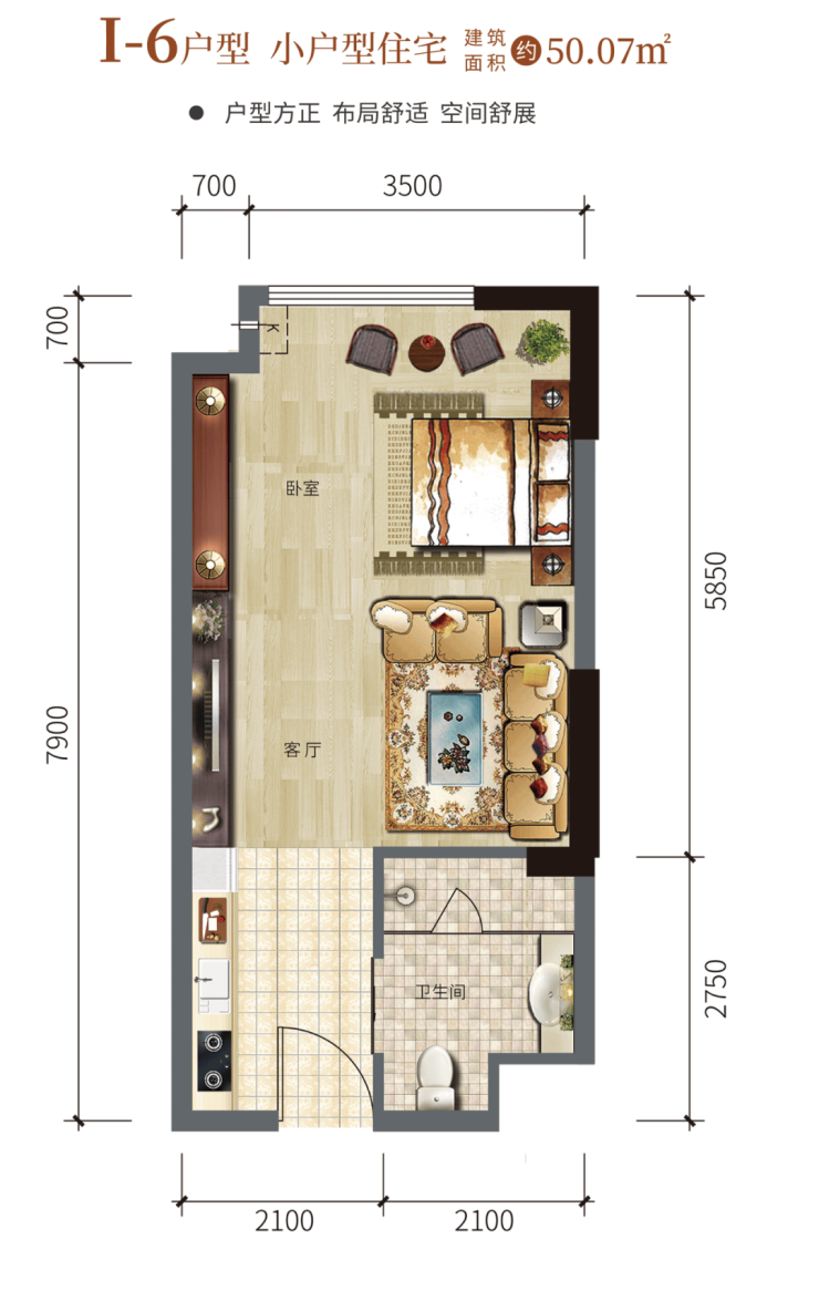 纳思·城市春天在售户型面积约50㎡,部分带租约销售。下关市区稀缺的70年产权带装修小户型住宅。