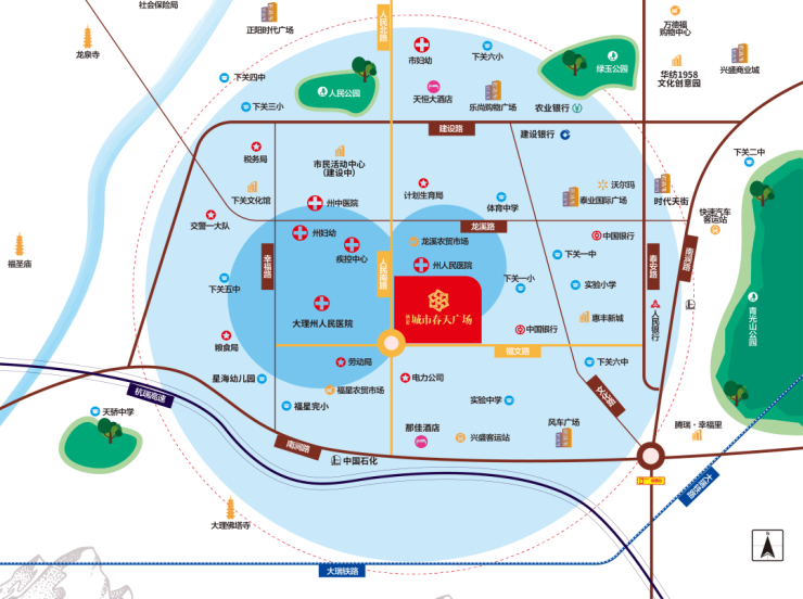 纳思·城市春天地处下关南区中心位置,人民南路与福文路两大城市主干道交汇,毗邻大理州医院,周边涵盖下关一小、下关一中等14所全龄段优质学府,5分钟内车程即可抵达泰业国际、正阳时代广场等各大商圈,农贸市场、银行、儿童教育、健身等生活配套一应俱全。